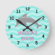 Niedlicher grauer Delphin und Zickzack Muster Kinder Kinderzimmer Wanduhr. Seeschlechtvektor-Design mit türkisblauem Zickzackhintergrund. Fügen Sie Ihren eigenen personalisierten Namen des Kindes hinzu. Einzigartige Dusche oder Geschenkidee für neue Kinder und Mama / Eltern. Individuelle Wohngestaltung und Dekoration für Kinderzimmer. Zigzag-Druck mit rosa Typografie, Fisch und nummerierter Zifferblatt.