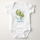 Moderner Baby Bodysuit mit niedlichem Dinosaurier. Personalisieren Sie einfach den Namen oder geben Sie ein Monogramm ein. Kate Eden Art
