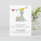 Niedlicher Dinosaurier Kuchen 1. Geburtstag Einladung. Der Header ist groß in stilvollen Kleinbuchstaben mit den Details unten. Personalisieren Sie den Text einfach. Ein koordinierendes Pulver blau ist auf der Rückseite