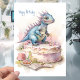 Niedlicher Dinosaurier mit Kuchen - Kindergeburtst Karte