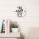 Niedlicher Cartoon Donkey mit Blume Zeichnend Wall-Uhr