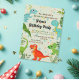 Machen Sie Ihren Geburtstag zu einem unvergesslichen Erlebnis mit unseren köstlichen Dino-Party Einladungen! Dieses charmante Design zeigt eine lebendige Grenze von spielerischen Dinosauriern und Blätter, die Ihre individuellen Party-Details umgeben, in stilvoller, moderner Typografie vor einem festlichen, weichen Hintergrund. Die Rückseite der Einladung bietet die Möglichkeit, das Foto Ihres Sohnes zu präsentieren, und eine persönliche Touch zu der Feier. Alternativ können Sie eine Hintergrundfarbe Ihrer Wahl wählen. Personalisieren Sie diese lustige Einladung, indem Sie den Namen Ihres Sohnes und alle wichtigen Party-Details hinzufügen. Machen Sie sich bereit für ein Dino-Mile-Fest!