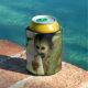 Niedlicher Eichhörnchenaffe, der einen Wafer Biscu Dosenkühler