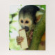 Niedlicher Eichhörnchenaffe, der einen Wafer Biscu Puzzle