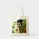 Niedlicher Eichhörnchenaffe, der einen Wafer Biscu Tragetasche
