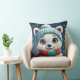 Eine zauberhafte Eisbärenfigur, die einen roten Schal und Hut trägt und eine große Schneeflocke inmitten einer schneebedeckten Winterlandschaft hält.