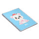 Niedlicher Eisbär und Schneeflocken auf dem Columbia Blue Notebook. Oti Name kann personalisiert sein.