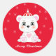 Niedlicher Eisbär und Schneeflocken auf Red Runder Aufkleber