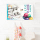 Niedlicher Elefant in Party Hut mit Balloons, Horn und Confetti feiert einen Geburtstag.