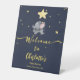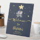 Dieses Babydusche-Begrüßungsschild mit einem niedlichen Babyelefant und einem Ballon in der strahlenden Nacht. Sie können den Text personalisieren, indem Sie auf den Knopf "Personalisieren" klicken und die Farbe ändern, indem Sie auf den Knopf "Bearbeiten mit dem Designwerkzeug" klicken. Guten Tag, mein Freund!