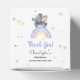 Diese Babydusche-Gefälligkeitsbox bietet einen niedlichen Elefanten, der auf einem farbenfrohen Regenbogen spielt. Sie können den Text personalisieren, indem Sie auf den Knopf "Personalisieren" klicken und die Farbe ändern, indem Sie auf den Knopf "Bearbeiten mit dem Designwerkzeug" klicken. Guten Tag, mein Freund!