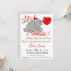 Ein fröhlicher, lächelnder, sehr niedlicher Elefant, der eine rote Weihnachtsmannmütze trägt und einen roten Stamm in sich trägt, ist der Mittelpunkt für eine Babydusche-Einladung. Die Namen der Eltern, die Tatsache, dass das Bundle ein Ferien-Baby sein soll, und alle Details für Ihre Babydusche sind in kontrastierenden roten Schrift und schwarzen Serif-Schriftartes enthalten.