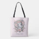 Die Tasche ist überdruckt mit einem zauberhaften Elefanten, umgeben von rosa Blumen und Grün. Passen Sie den Namen Ihres Kindes an.