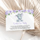 Fügen Sie Ihrer Babydusche mit diesen stilvollen und unvergesslichen Party eine persönliche Touch hinzu! Das Design zeichnet sich durch lila Aquarellfarben-Blume (Rose und Pioniere), grüne Blätter und kleine Elefanten auf weißem Hintergrund aus.