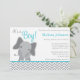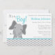 Eine moderne Babyduscheneinladung des grauen und aquamarinen blauen Elefanten themed. Vervollkommnen Sie für eine Babyparty des kleinen Jungen.