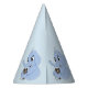 Party Hut mit Design mit einer Abbildung eines blauen Elefanten mit brauner Maus; illustriert von Radka Kavalcova / MaxiHarmony