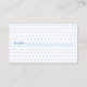 Fügen Sie diese niedlichen blauen Zirkus Elefanten Diaper Raffle Tickets zu Ihrem Baby Dusche Einladungen und lass die Spiele beginnen! Diese Babyduschenkarten sind leicht zu verändern und werden zu blauen Polka-Punkten auf Weiß umkehrt, wobei eine optionale Linie für einen dunkelblauen Namen verwendet wird. Auf der Vorderseite jedes Babyduschtenblattes wird ein bezaubernder, blauer Elefant gehandhabt, während er auf der Spitze seines Kofferraums einen Minzgrün ausbalanciert, und R ist für RAFFLE, der in einer Kaskade mit blauen Schriftzügen hinter ihm ausgeschrieben ist. Zwei Vorlagen lassen sich leicht mit dem Namen der Mutter-zu-sein-Mutter in tiefblau und mit dem hellblauen Text für den Verlosungspreis, der an der Babydusche verliehen wird, anpassen. Persönlich gestalten Sie diese niedlichen Blu/Weiß-Baby-Duschdiapiere für Ihre Baby-Dusche-Einladungs-Suite.