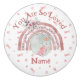 Das Baby Elephant Rainbow Keramik Knob - eine charmante und skurrile Ergänzung zu Ihrem kleinen Kinderzimmer. Es zeichnet sich durch ein reizvolles Design eines niedlichen Aquarellbabys und Mama-Elefanten unter einer Regenbogenillustrierung aus. Mit bearbeitbarem Text, der besagt, Sie sind so geliebt und ein Ort für den Namen Ihres neuen Babys.