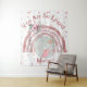 Die Einführung des Baby Elephant Rainbow Tapestry - eine charmante und skurrile Ergänzung zum Kinderzimmer Ihres Kleinen. Es zeichnet sich durch ein reizvolles Design eines niedlichen Aquarellbabys und Mama-Elefanten unter einer Regenbogenillustrierung aus. Mit bearbeitbarem Text, der besagt, Sie sind so geliebt und ein Ort für den Namen Ihres neuen Babys.