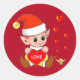 Niedlicher Elf mit Liebe Herzen in Rot Runder Aufkleber