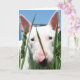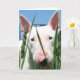 Treffen Sie den Mackenzie, den englischen Bullterrier, der unsere Leben umgedreht drehte und unsere Herzen im Prozess stahl. Sie ist immer vom Spaß voll und behält uns auf unseren Zehen. Sie wird in diesem Foto gezeigt, das durch etwas langes grünes Gras späht. Dieser entzückende Hund wird gegen einen schönen blauen Himmel an einem hellen sonnigen Tag dargestellt.