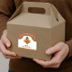 Feiern Sie Erntedank jetzt in einer Weise, dass Spaß und cool mit einem Aufkleber für übrig gebliebene Schachteln, die einen niedlichen kleinen Cartoon Truthahn auf ihm mit einem kleinen Pilgerhut hat. Auch hat die bunten warmen Worte Happy Thanksgiving auf ihm. Vermischen Sie die lustigen Herbstfarben und das lustige Design der Illustration, um es perfekt angepasst zu machen für das Angebot von Erntedank übrig geblieben. Sie können eine eigene Erntedank-Nachricht hinzufügen. Der lächelnde Truthahn hat helle Federn im Schwanz und einen Pilgerhut, der Ihrem Fest etwas Chic und Ferien verleiht.