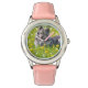 Kinderuhr aus Edelstahl mit rosa Lederarmband