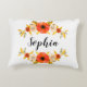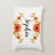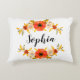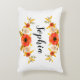 Akzente Kissen mit korallenfarbenen Blume auf weißem Hintergrund und anpassbarem Text.