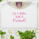 Dieser Niedliche Fluffy Weiße Hund trägt einen Hut mit einer Katze auf seinem Kopf und sagt: "Das Leben ist besser mit einem Freund". Personalisieren Sie dieses Handtuch bis zum Herzenslust.