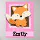 Niedlicher Fox auf rosa und weiße Streifen Poster
