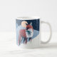 Allein auf einem schneebedeckten Berggipfel mit Vollmond als einziger Führer sucht dieser niedliche rote Fuchs seinen Weg Zuhause. Schöner Fuchs im Winterschnee, digitale Malerei Illustration auf Tasse.