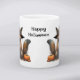 Frohe Halloween-Tasse mit einem niedlichen Fuchs, der einen Hexenhut trägt. Tasse als Jahreszeiten oder Feiertage zu wechseln ist ein schnelles Update für die saisonale Wohngestaltung. AI unterstützte Grafik, die mit kommerziellem Einsatz erworben wurde. Kunstwerk: RedHeronLighthouse