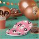 Entzückende französische Bulldoggen oder Frenchies in zwei Farben - Creme und Schwarzes. Die rosa Hintergrundfarbe ist kundengerecht.
