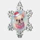 Niedlicher französischer Bulldog mit Hut und Schal Schneeflocken Zinn-Ornament