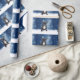 Niedliches französisches Bulldog Snow Stars Blue Weihnachtsthema.