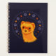 Niedlicher Frettplaner mit digitaler Darstellung in Gelb, Orange und lila, der eines dieser lieblichen, flauschigen Tiere darstellt, die lächeln, dekorative Elemente, Blume und Sterne um sich herum. Großartiges Geschenk für eine Frettmutter.