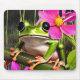 KI-Kunst, die einen niedlichen Frosch oder eine Kröte darstellt, die auf einem Zweig rosa Blume mit einem Sumpfhintergrund sitzt.