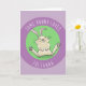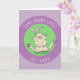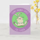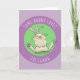Niedlicher, fröhlicher, sonniger lila Kaninchen-Ca Karte