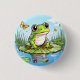 Niedlicher Frosch und Schmetterlinge auf Lily Pad Button