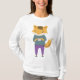 Niedlicher Cartoon-Fuchs in Jeans mit Tasse Tee