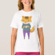 Niedlicher Cartoon-Fuchs in Jeans mit Tasse Tee