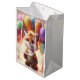 Niedlicher Fuchs umgeben von bunten Ballons. Mittlere Geschenktüte