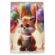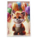 Niedlicher Fuchs umgeben von bunten Ballons.