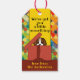 Ein lustiges Geschenk-Tag mit einem niedlichen kleinen Welpen in einer Box auf einem farbenfrohen Hintergrund. Schön für ein wirklich niedliches Überraschungsgeschenk für einen Geburtstag, Weihnachten oder einfach nur weil ...