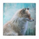 Keramik Fliesen mit einem Foto eines niedlichen Fuchs stehend allein. Set auf blauem Grunge Hintergrund.