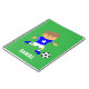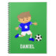 Dieses niedliche Notizblock ist ideal für Jungen, die Fußball- oder Fußballspieler sind. Es kommt mit einem niedlichen Jungen in einem trendigen blauen Fußballfieber mit Stern, weißen Streifen auf den Ärmeln, weißen Shorts und passenden blauen Fußballschuhen, mit Stiften, die sich bereit machen, einen Fußball für Tor zu kick! Personalisieren Sie Ihre Daten mit dem Namen des Kindes.