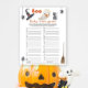 Mit niedlicher Wasserfarbe von Baby Geist und Halloween Ästhetik. Ein bisschen Boo ist fast fällig! Halloween Babydusche mit Aquarellhocker, schwarze Katze, Hexenhut, Magic Mop ( Besenstiel ), Spinne, die aus einem Netz hängt. Der kleine Geist isst einen Lollipop.