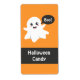 Ein niedlicher, weißer Geist, der glücklich scheint, wenn er schelmisch ist, herumschwebt und "Boo!" macht, um die Leute zu verspochen. Ein kinderfreundliches Design für Kinder zum Kennzeichnen der Halloween Candy Jars und Flaschen.