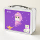 Niedliches mystisches Genie, magische Lampe, Tabby Kätzchen & Sterne auf violettem Metal Lunch Box.