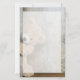 Geschirr mit einem Lieblingsfoto eines niedlichen gestopften Bären, stehend von einer rustikalen Holzwand / Kulisse.